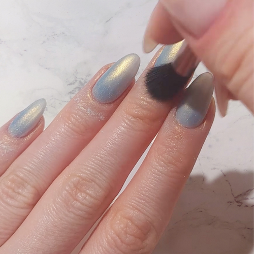 Step 4: Clean Up Excess: Wipe away any excess powder for a clean and polished look.