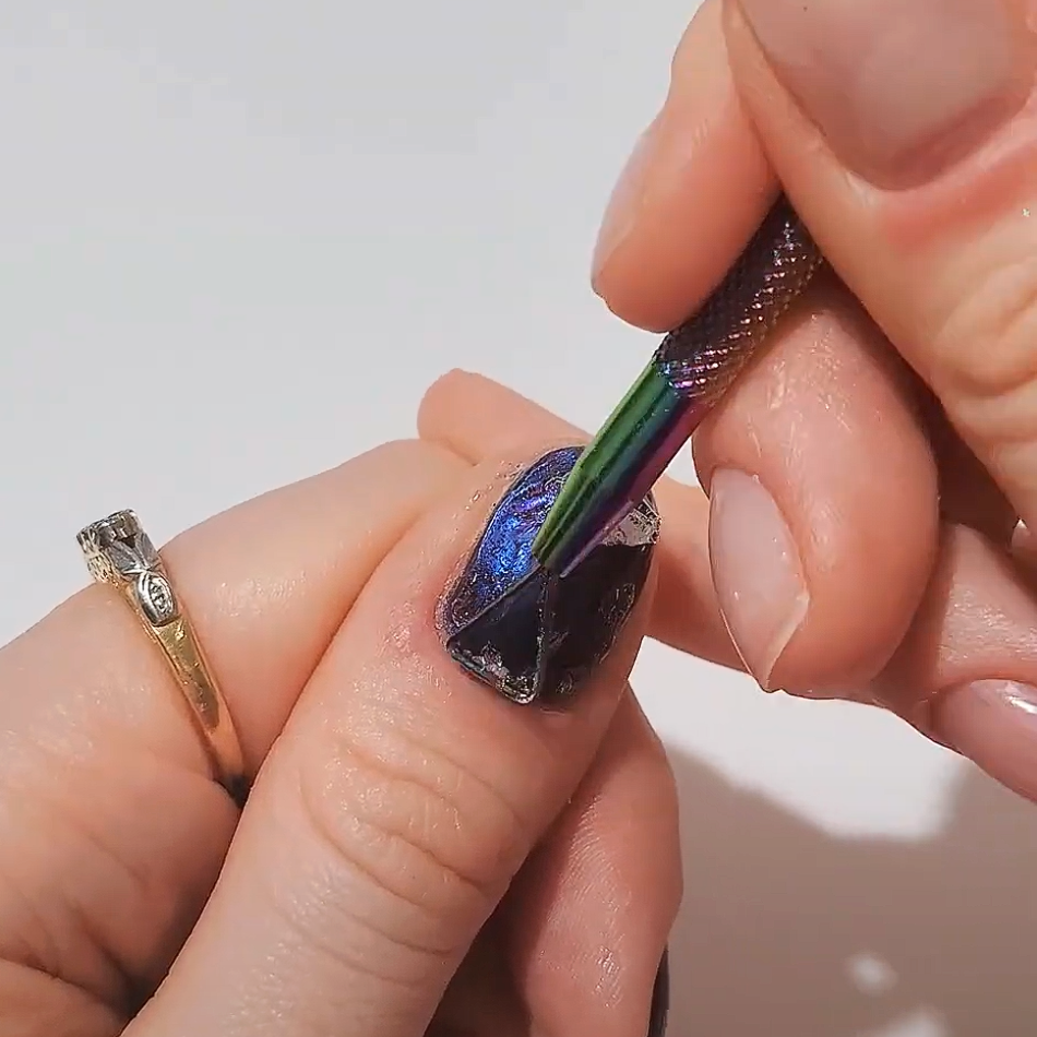 Step 2: Apply Rapid Remover with slight thickness onto the nail shade. Wait approx. 5 to 8 minutes.